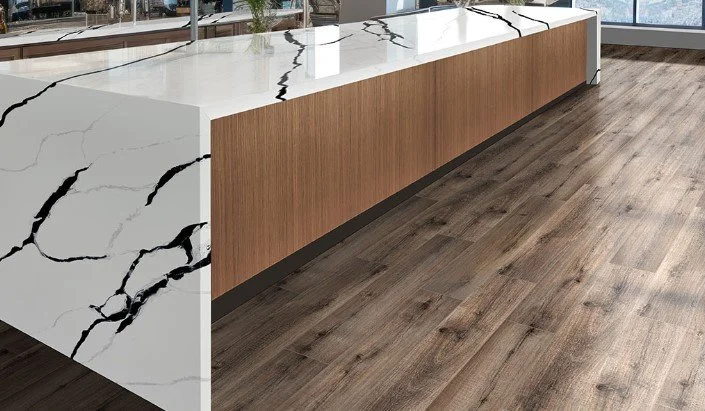 Bayhill Blonde® Luxury Vinyl Planks offer elegant light cashew brown tones with subtle knots and grains for an authentic wood look. This beautiful 7x48 wood-look LVP is 100% waterproof and protected with a 20 mil commercial-grade version of CrystaLux Ultra™, a protection layer that provides durability and longevity, protecting against everyday wear. It also comes with a custom-designed beveled edge, an innovative pre-attached backing to ensure supreme comfort underfoot and an easy-install locking system. This rigid core flooring features “no acclimation” technology that enables buy today, install today convenience. In the kitchen, living area, bathroom, basement and beyond, there’s no easier way to create luxurious, affordable floors in residential or commercial settings. A full range of vinyl flooring trims is available to give your project a professional finish. Andover planks feature a lifetime limited residential, 15-year limited light commercial, and 10-year limited commercial warranty.